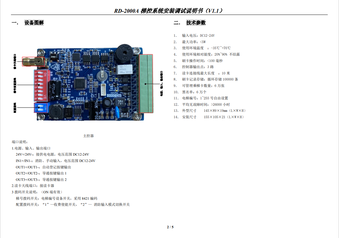 RD-2000A 梯控系統安裝調試說明書(V1.1)